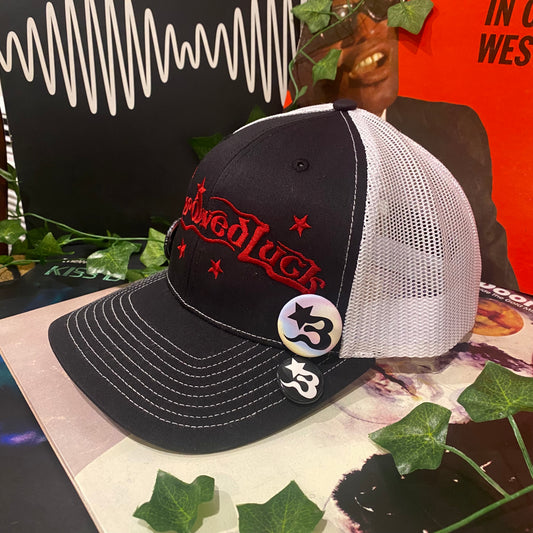 Lucky Trucker Hat in Black w/ White Mesh